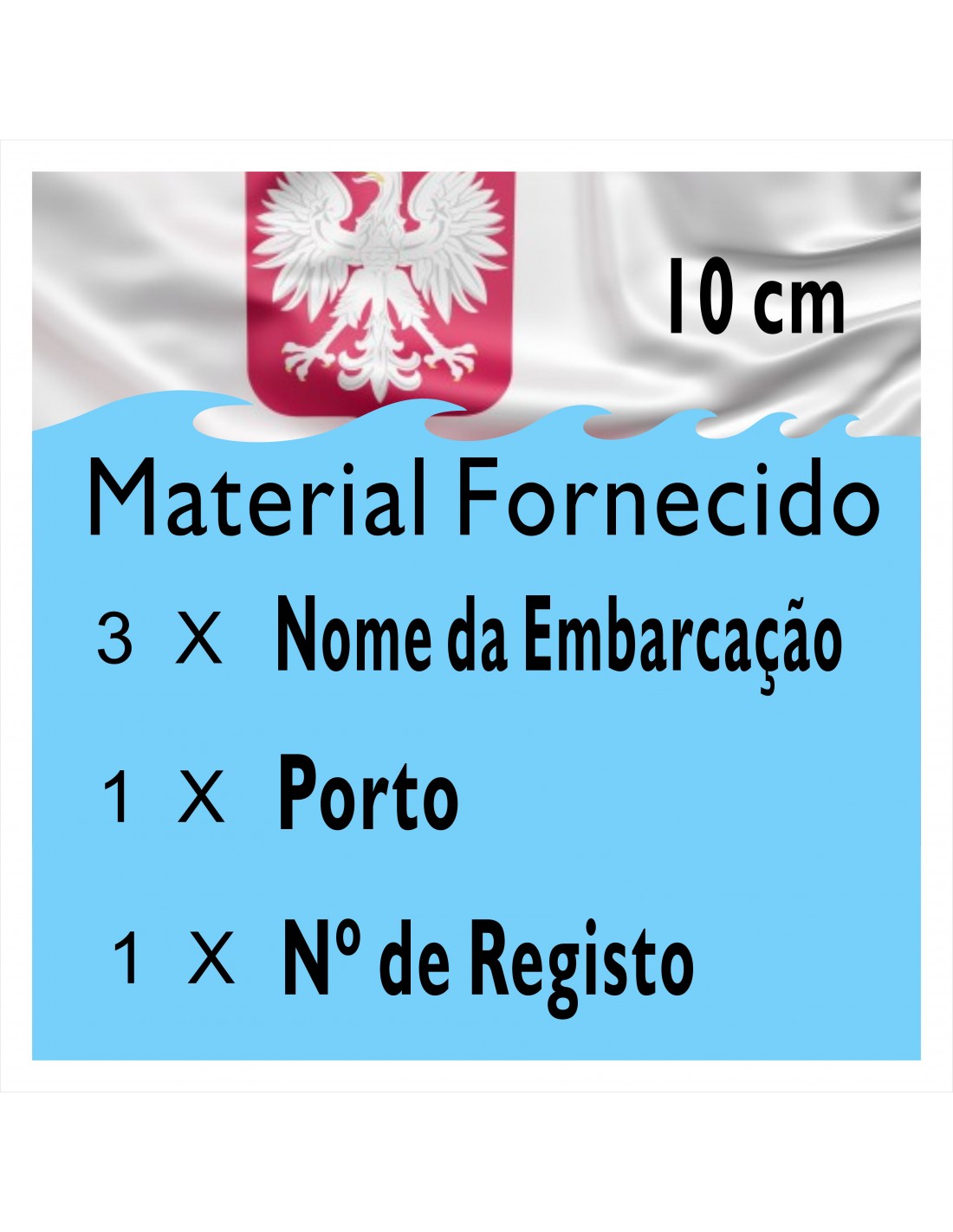 Guarde a descrição da matricula antes de adicionar ao carrinho- Na popa Nome da embarcação em cima e por baixo o Registo e nome do porto onde esta registado